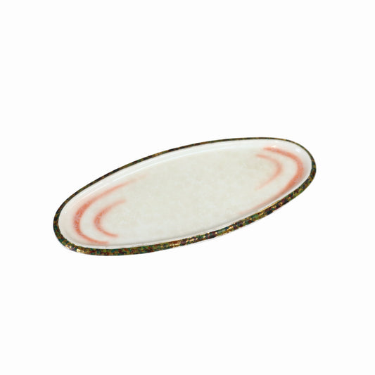 楕円小皿手書赤緑絵 ホワイト 12cm